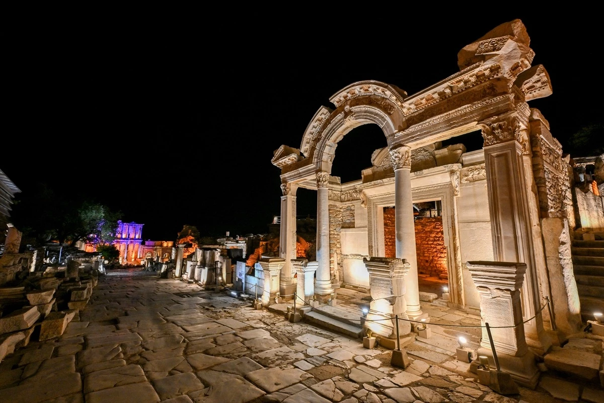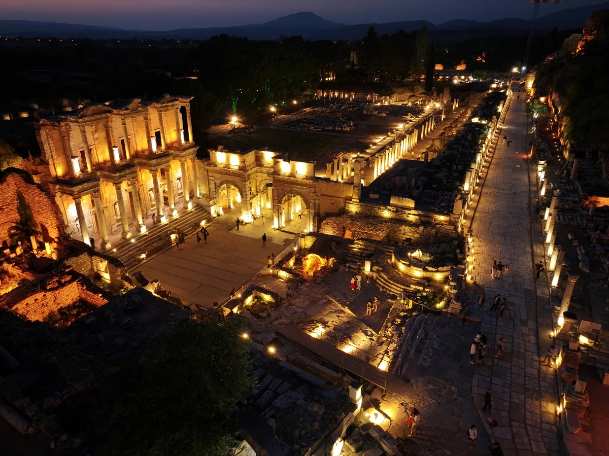 Die beleuchtete antike Stadt bietet ein fesselndes Schauspiel. Die Celsus-Bibliothek und der Agora-Platz aus dem 2. Jahrhundert n. Chr. sowie die Kuretenstraße, der Domitian-Tempel, der Trajan-Brunnen, das große antike Theater mit einer Kapazität von 25.000 Plätzen, das Stadion und der antike Hafen erwachen durch die Beleuchtung zu einem besonderen Ambiente.
